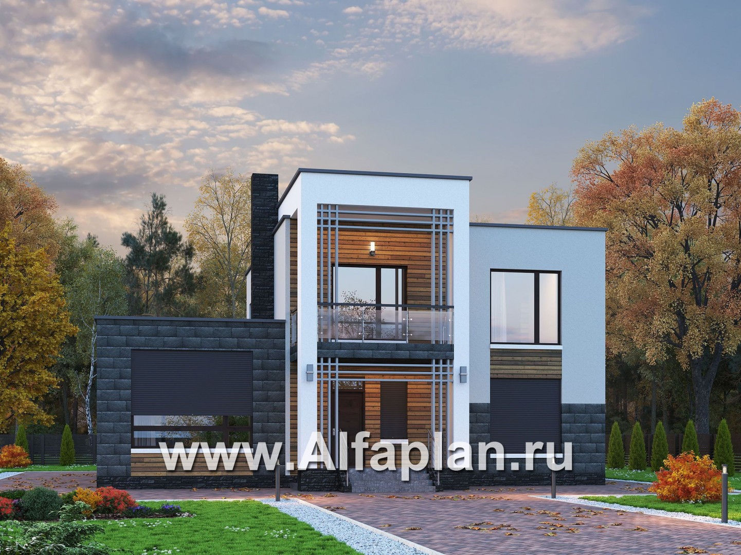 «Футура» - современный двухэтажный дом, с террасой и сауной, с плоской крышей, в стиле модернизм