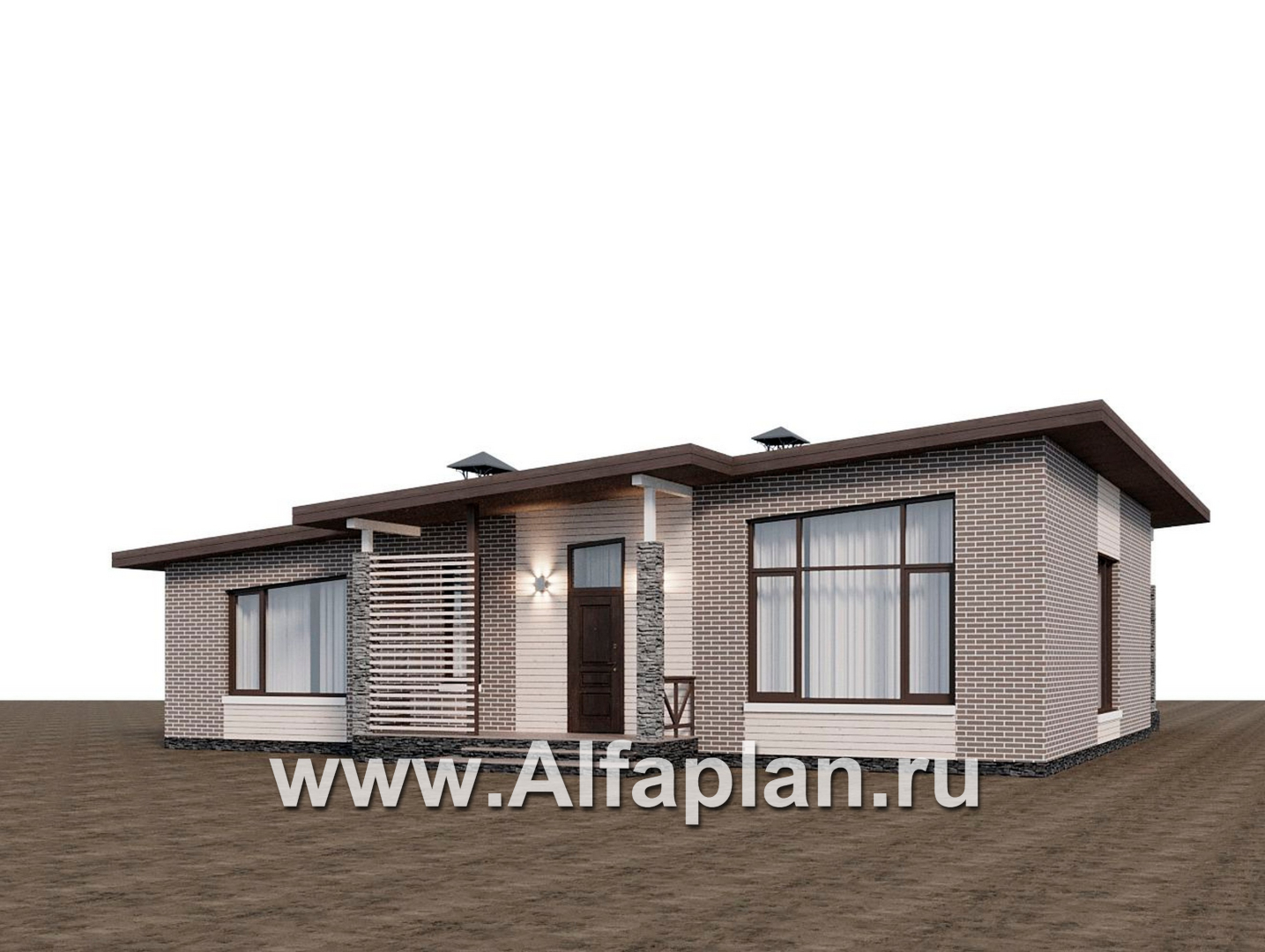 «Стрелец» -проект современного одноэтажного дома с террасой со стороны входа, с односкатной крышей