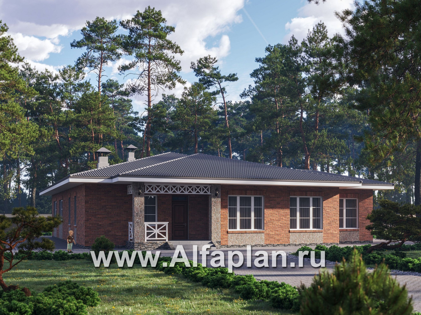 666A-2-S «Горизонталь» - проект одноэтажного дома с террасой, в немецком стиле, баварская кладка