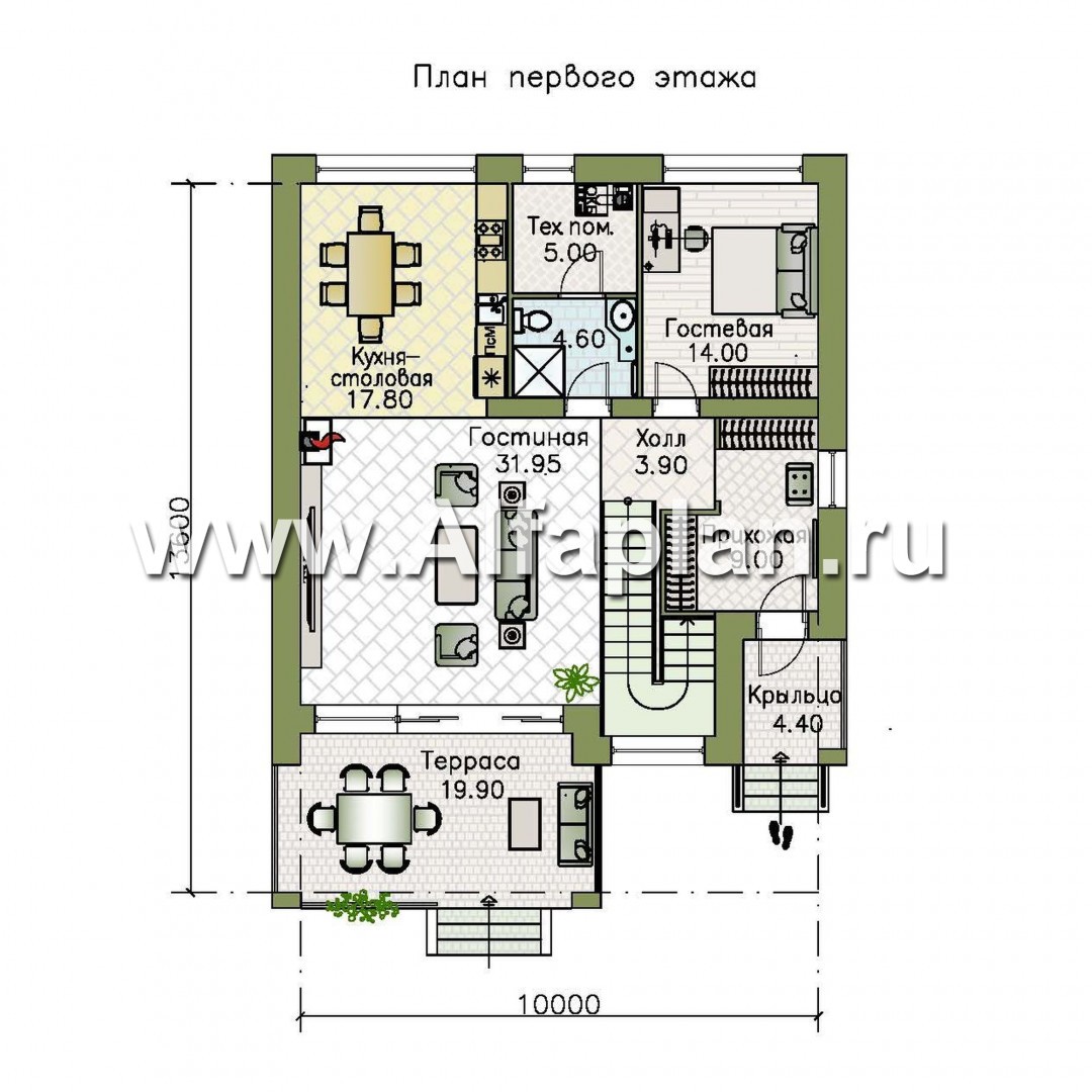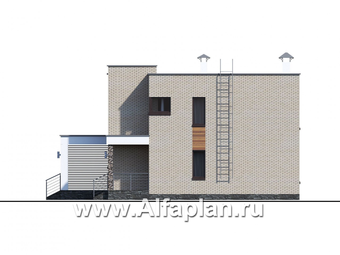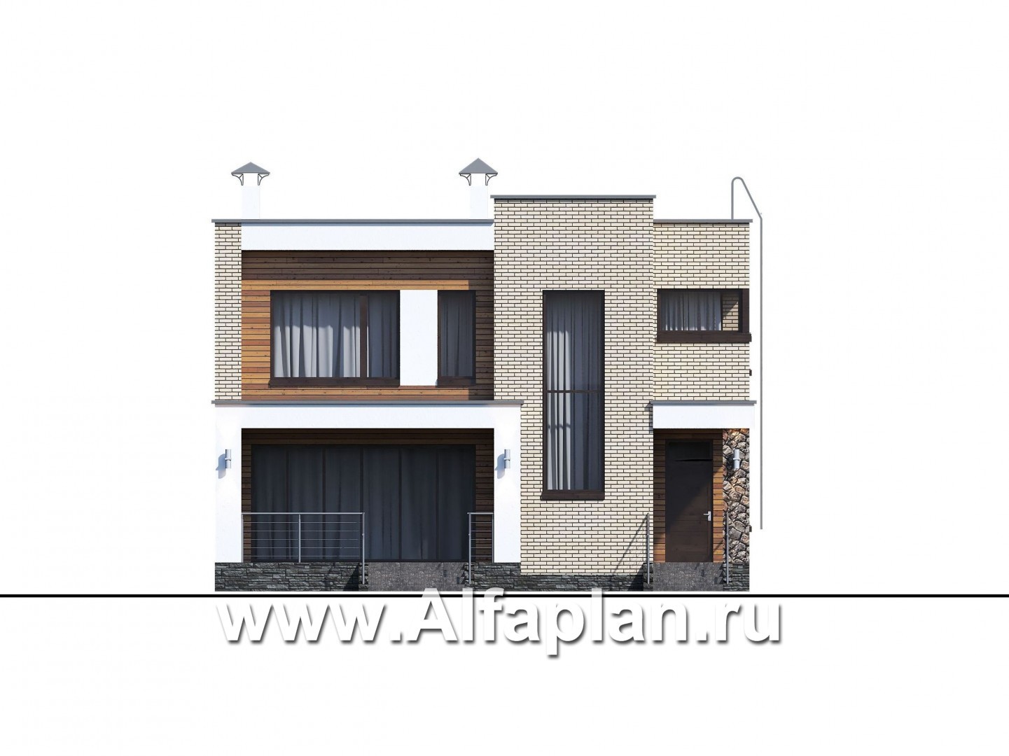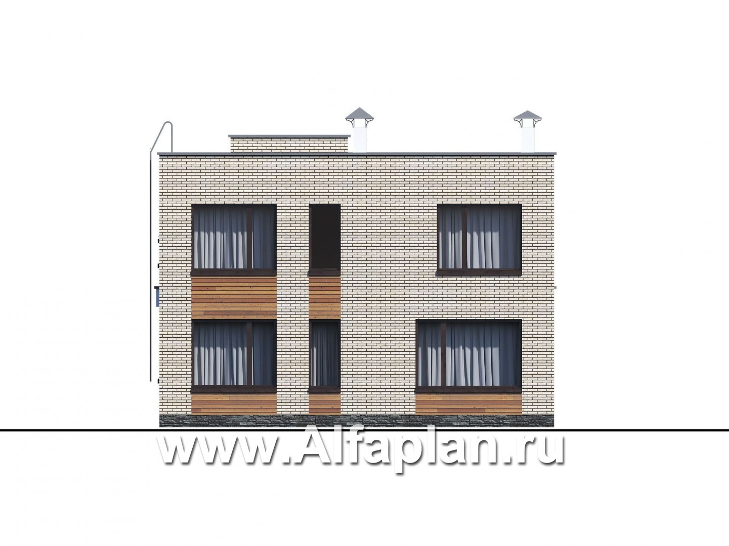 931A «Эрго» - проект двухэтажного дома 10х10м, с плоской кровлей, и террасой со стороны входа