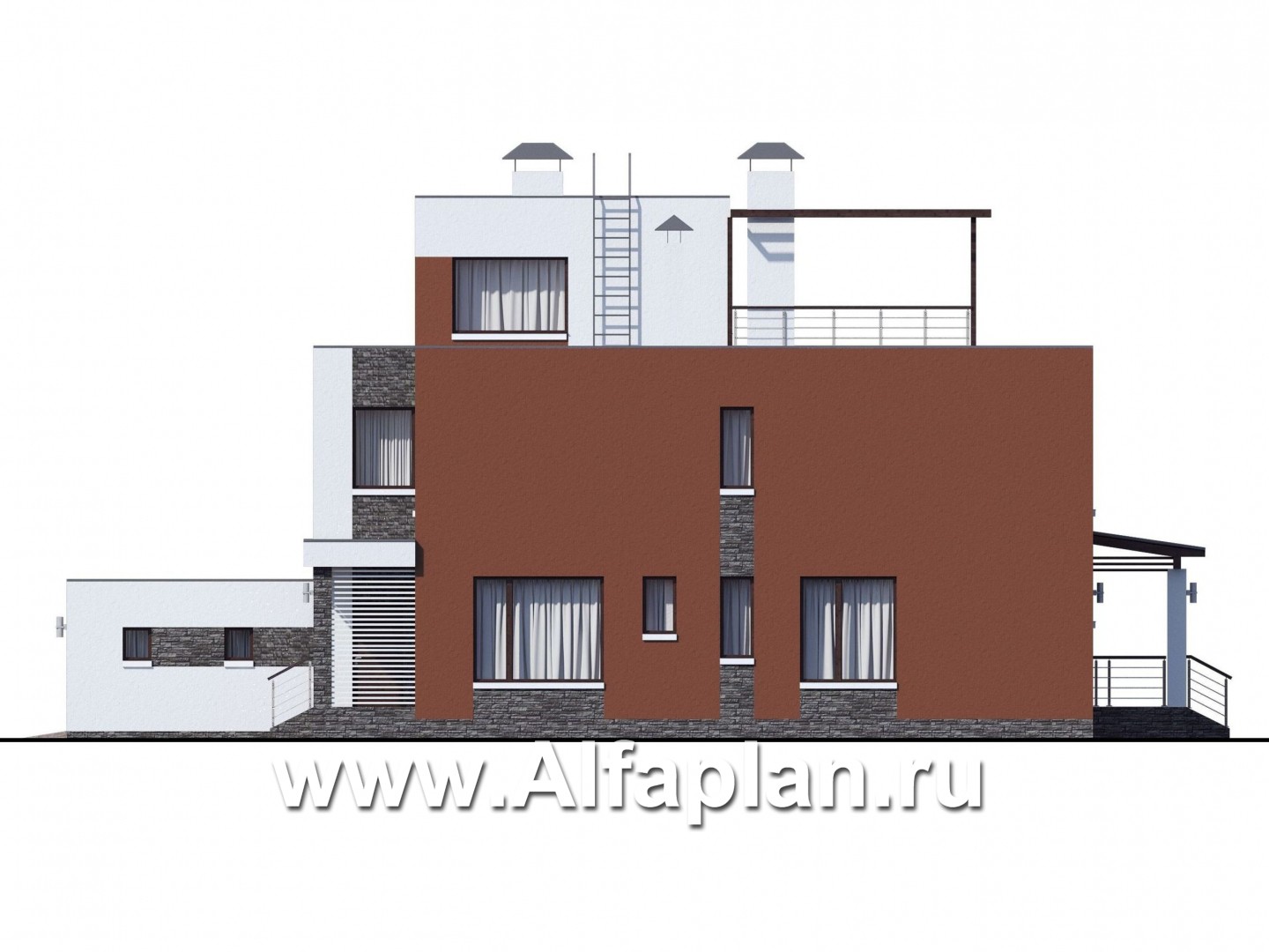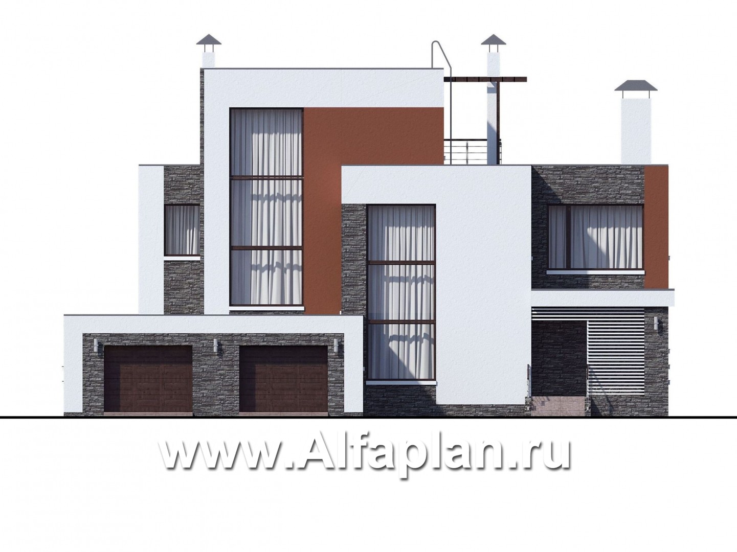 717B-S « Альстер» — проект двухэтажного дома в стиле хай-тек, элитая вилла, навес на 2 авто