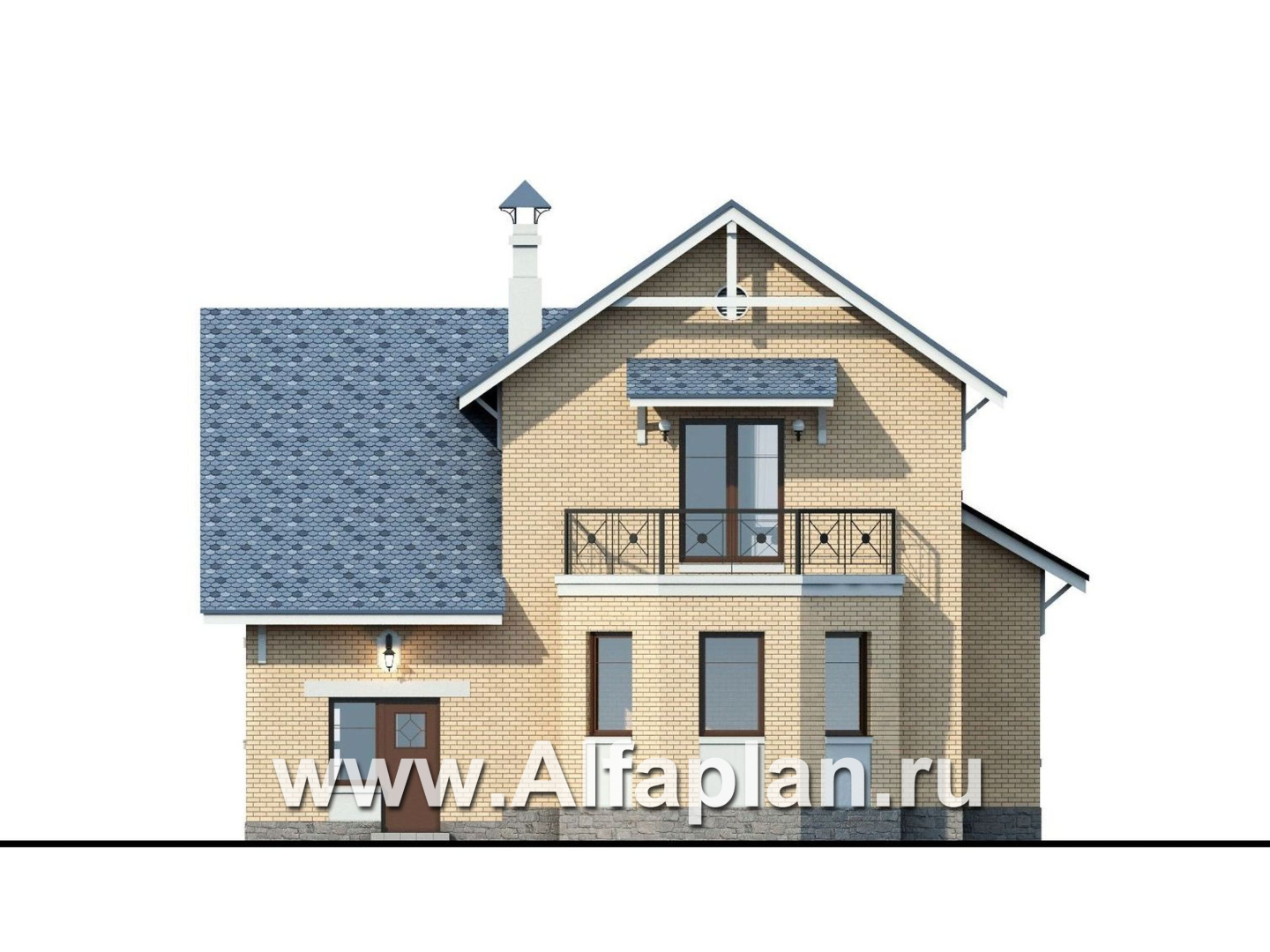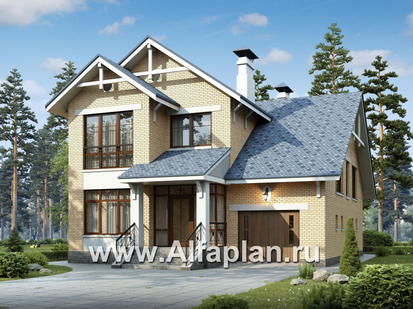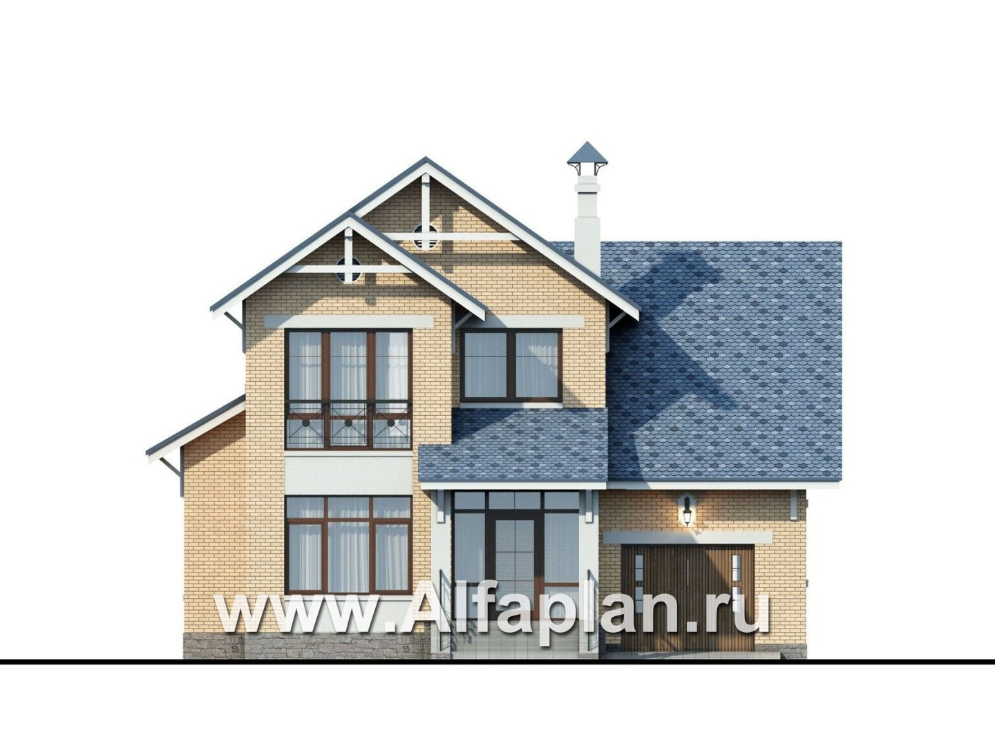 154A-S «Дженни Врен» - проект двухэтажного дома из кирпича с фото, планировка с эркером и с гаражом, в русском стиле