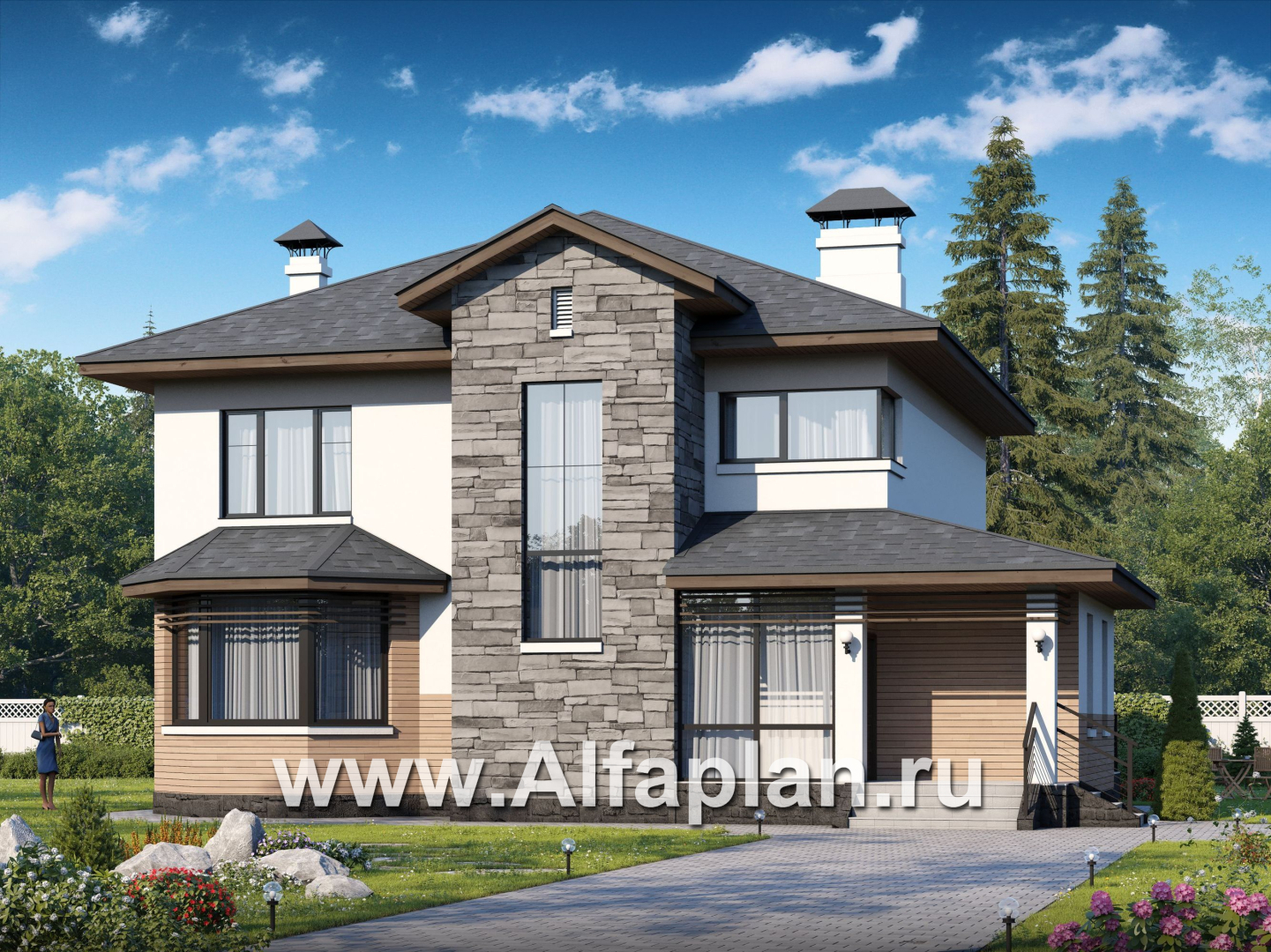 311A-S «Оазис» - проект двухэтажного дома с эркером, с комфортной планировкой