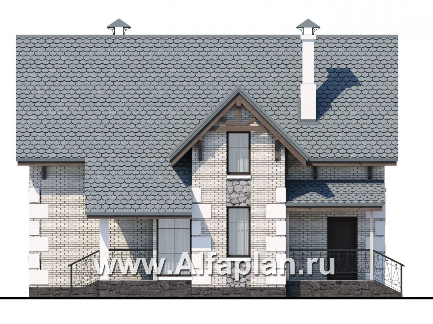 Одновременно в облике этого дома из кирпича (газобетона) присутствуют едва уловимые черты классического стиля: знатоки непременно обратят внимание на рустовку углов и наличие оштукатуренных декоративных элементов, обрамляющих окна.