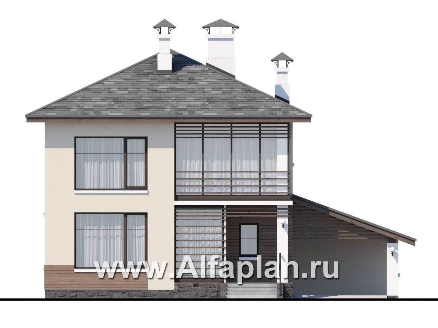 533B-S «Эволюция» - проект двухэтажного дома, с балконом, навес на 1 авто, в современном стиле