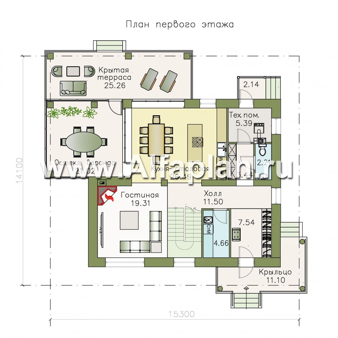 «Земляничная поляна» - проект двухэтажного дома, с большой верандой, мастер спальня - технические характеристики