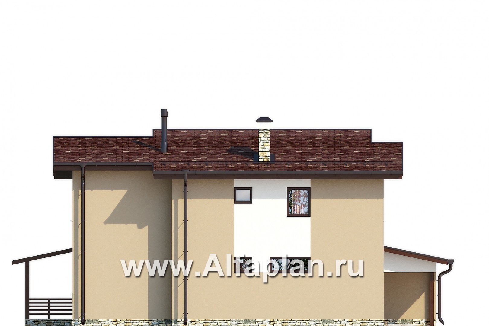 Проект каркасного двухэтажного дома, с террасой, планировка 4 спальни, с навесом на 2 авто