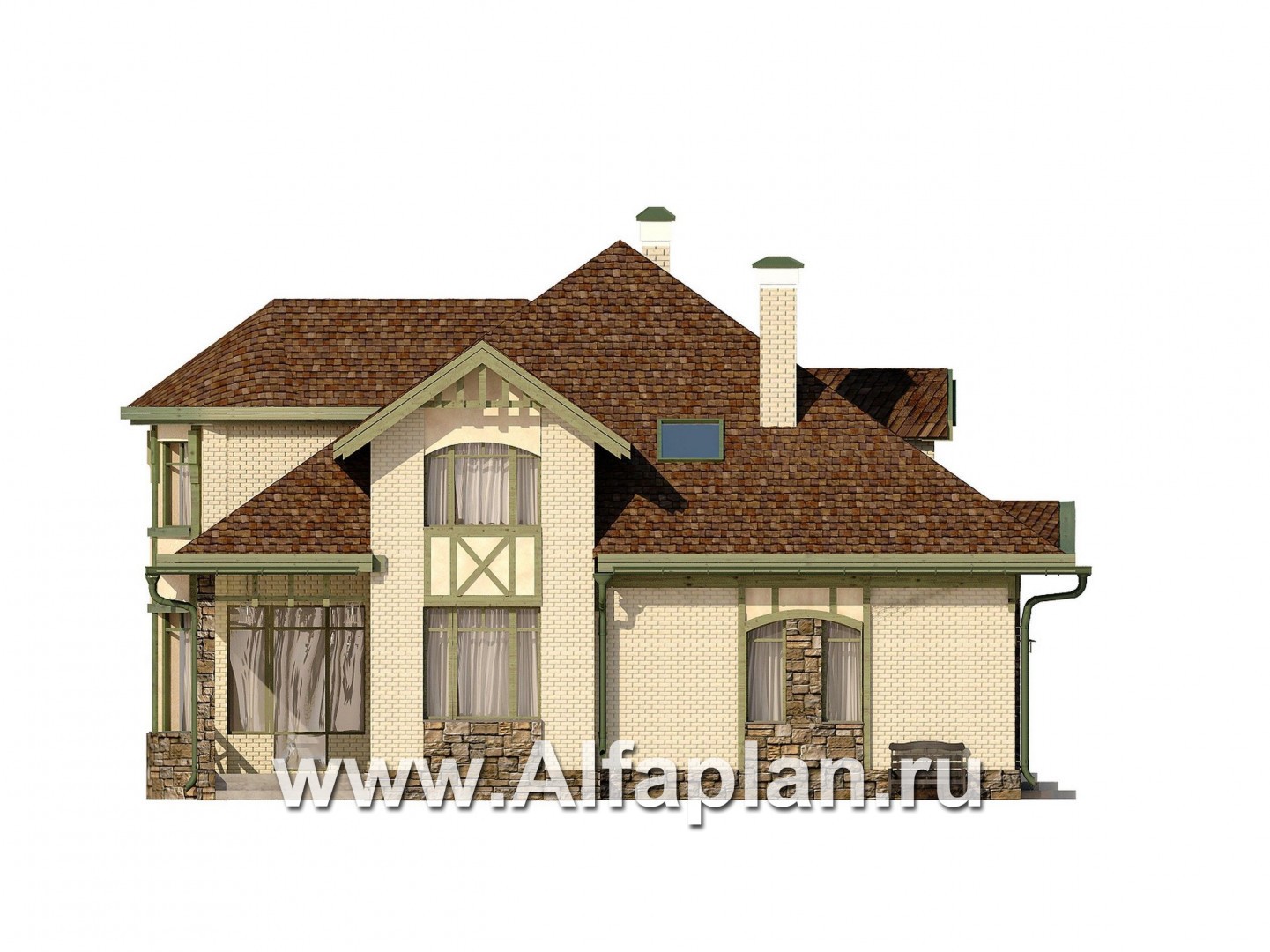 Классика – стиль, который никогда не потеряет своей актуальности. Предлагаемый проект дома из пенобетона воплотил в себе все особенности традиционного подхода в архитектуре. В экстерьере делается акцент на контраст, что видно по сочетанию ярко-коричневой битумной черепицы с нежной фактурой облицовочного кирпича наружных стен. Здание дополнительно оформлено серым декоративным камнем, который прекрасно гармонирует с общим дизайном объекта.