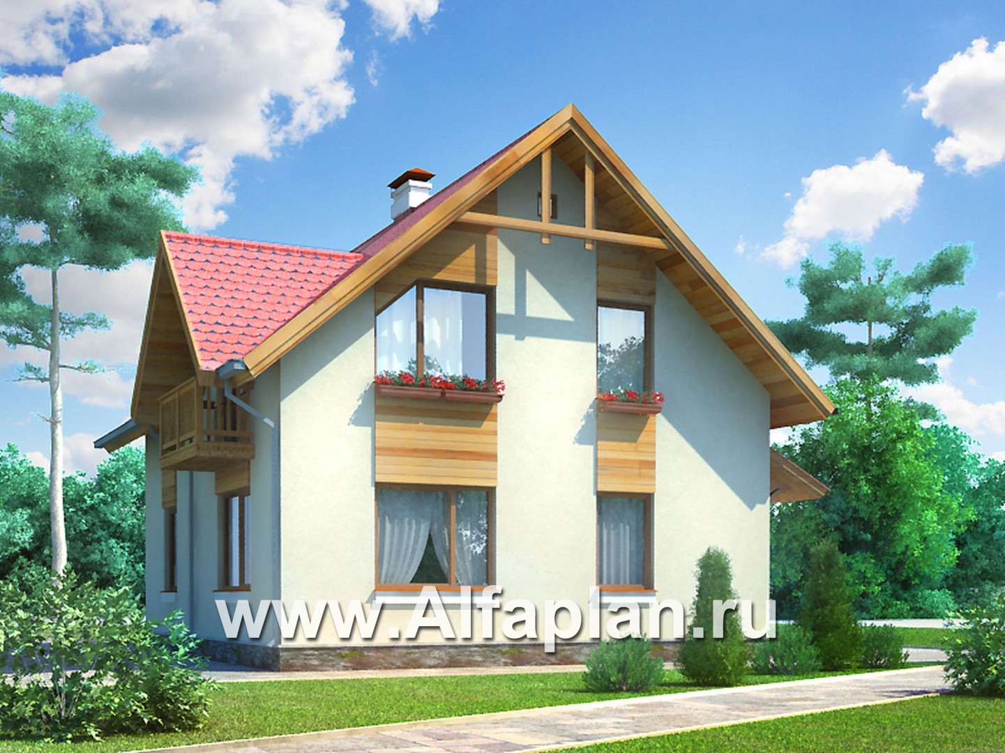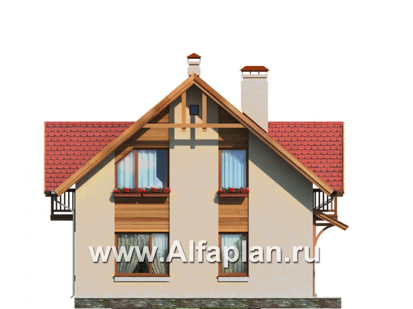 Проект дома с мансардой, 3 спальни, дачный коттедж
