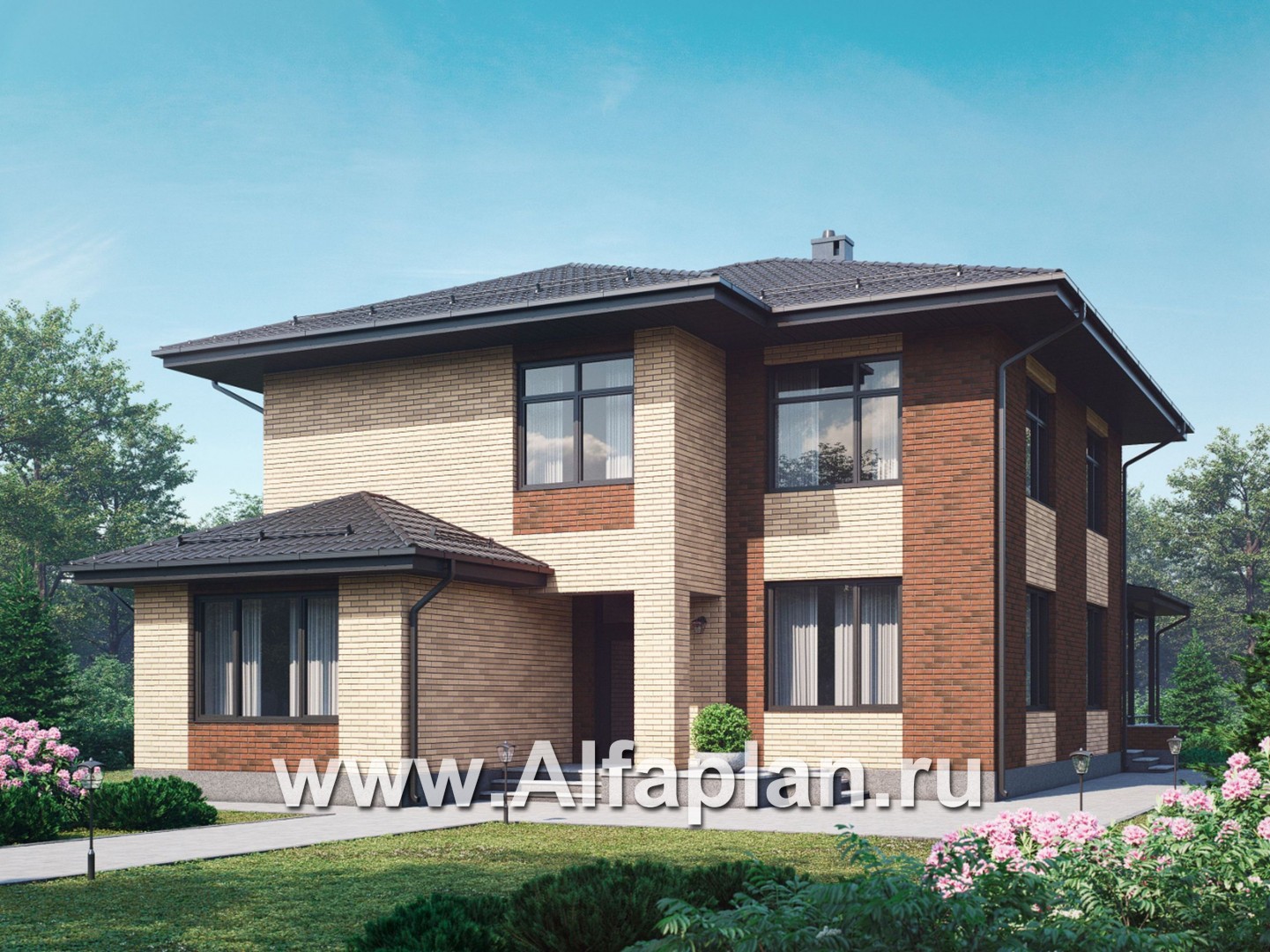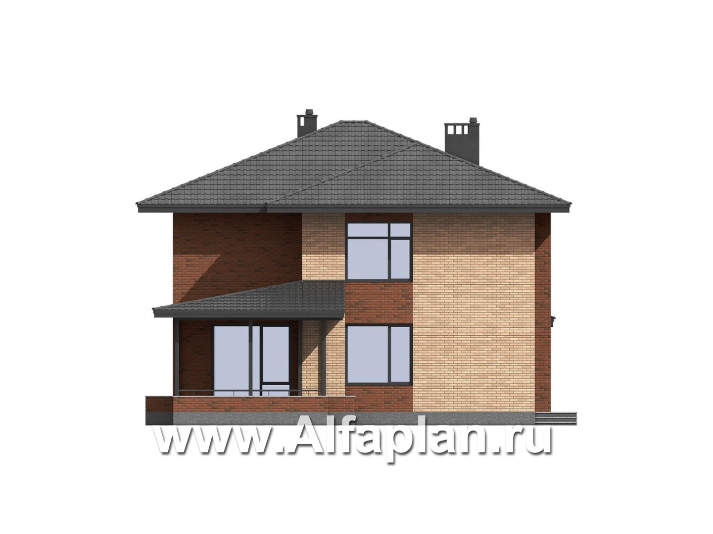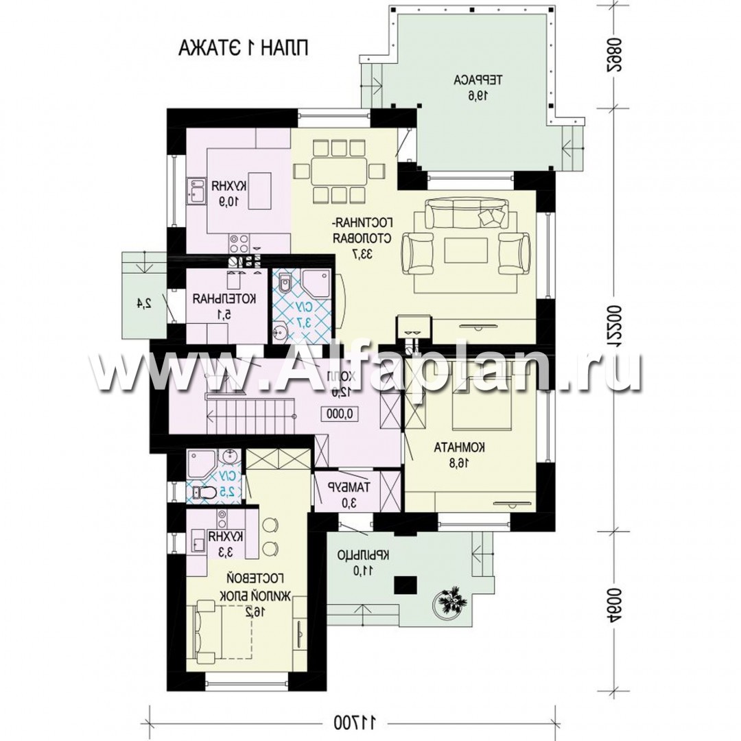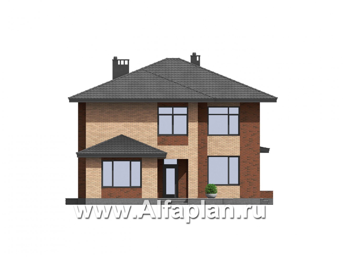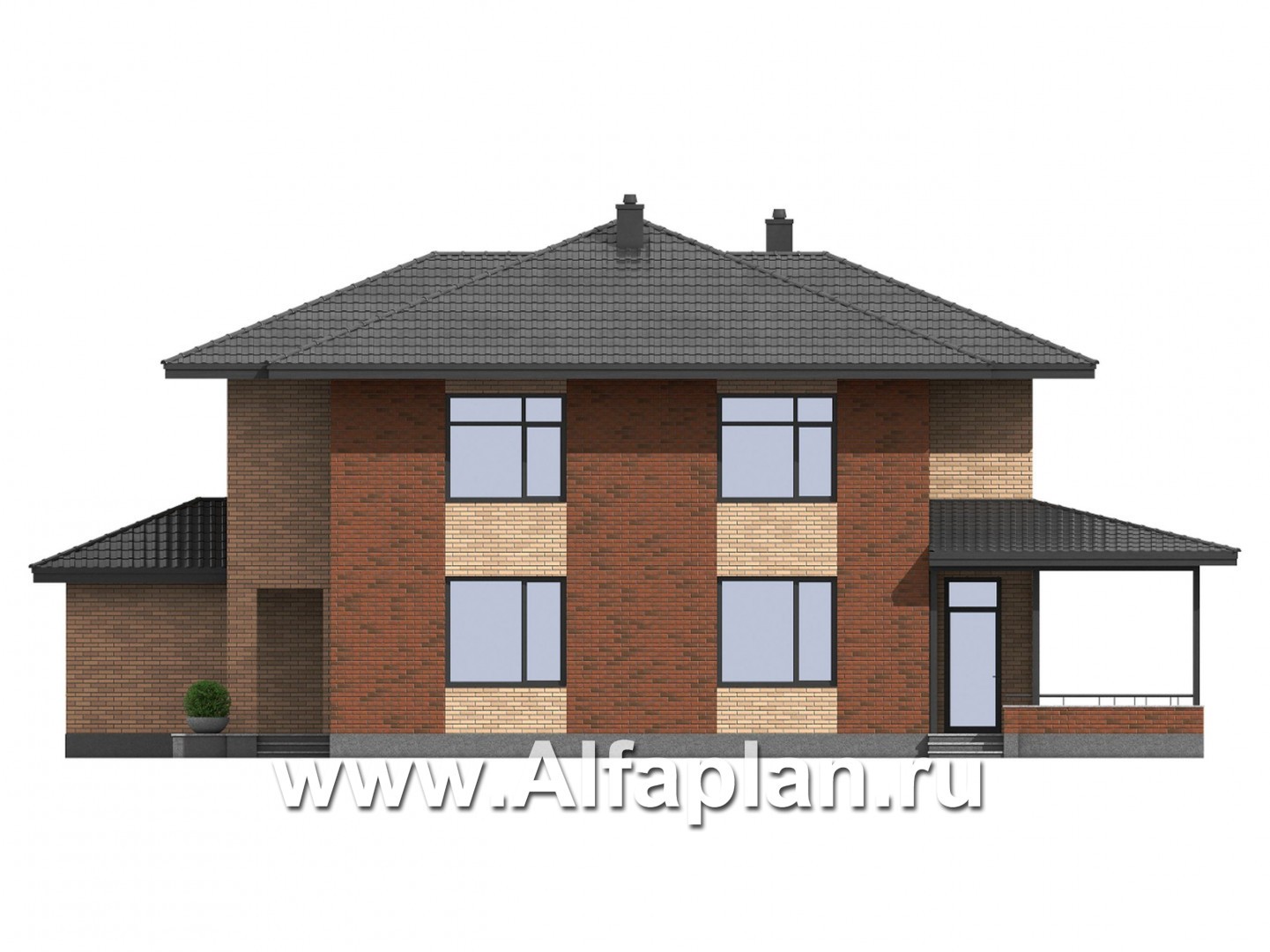 Проект двухэтажного коттеджа, планировка с кабинетом и с гаражом, с террасой, в современном стиле