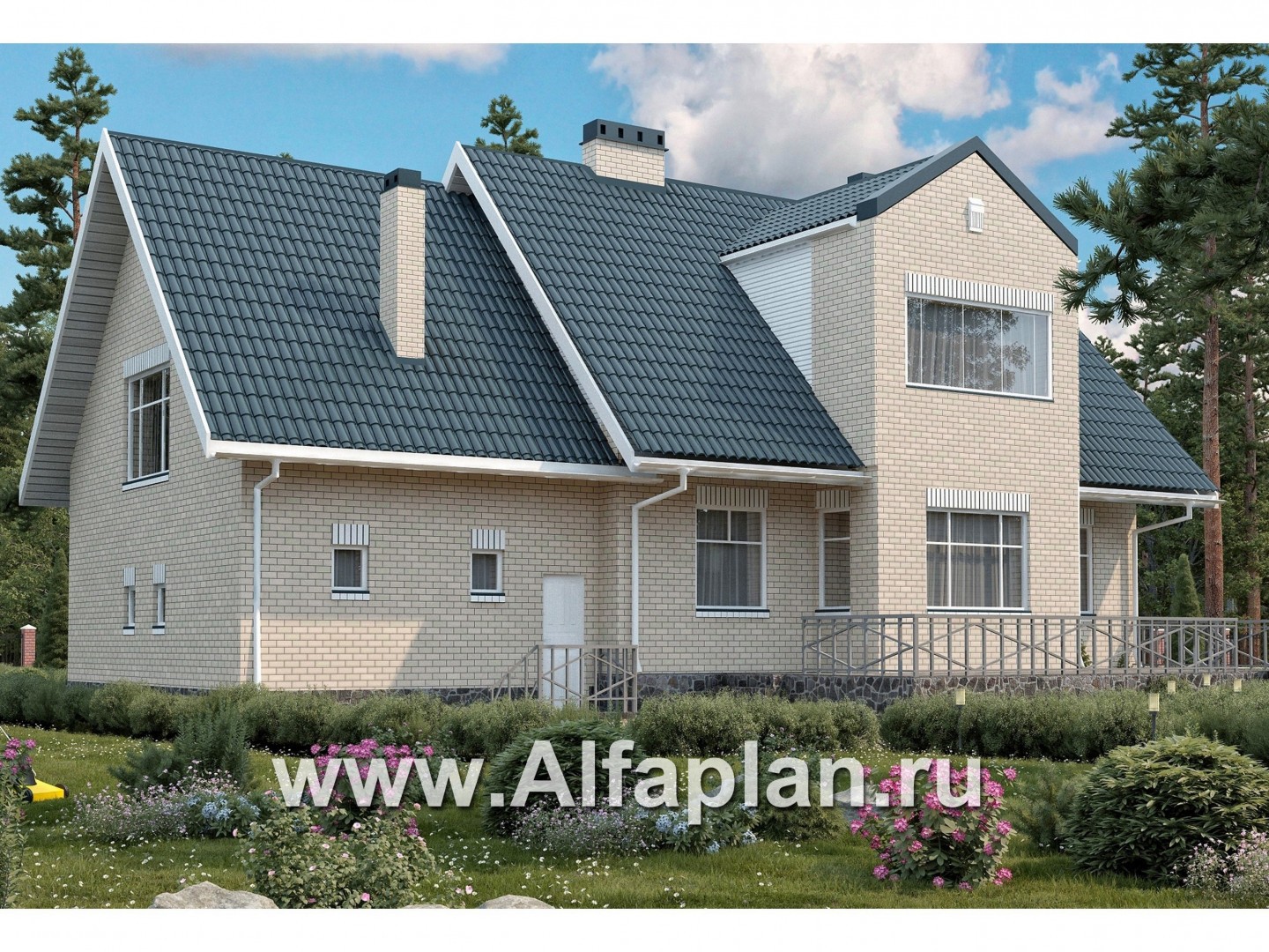 Проект дома с мансардой, из газобетона, с гаражом на 2 авто, с бассейном и сауной в цокольном этаже