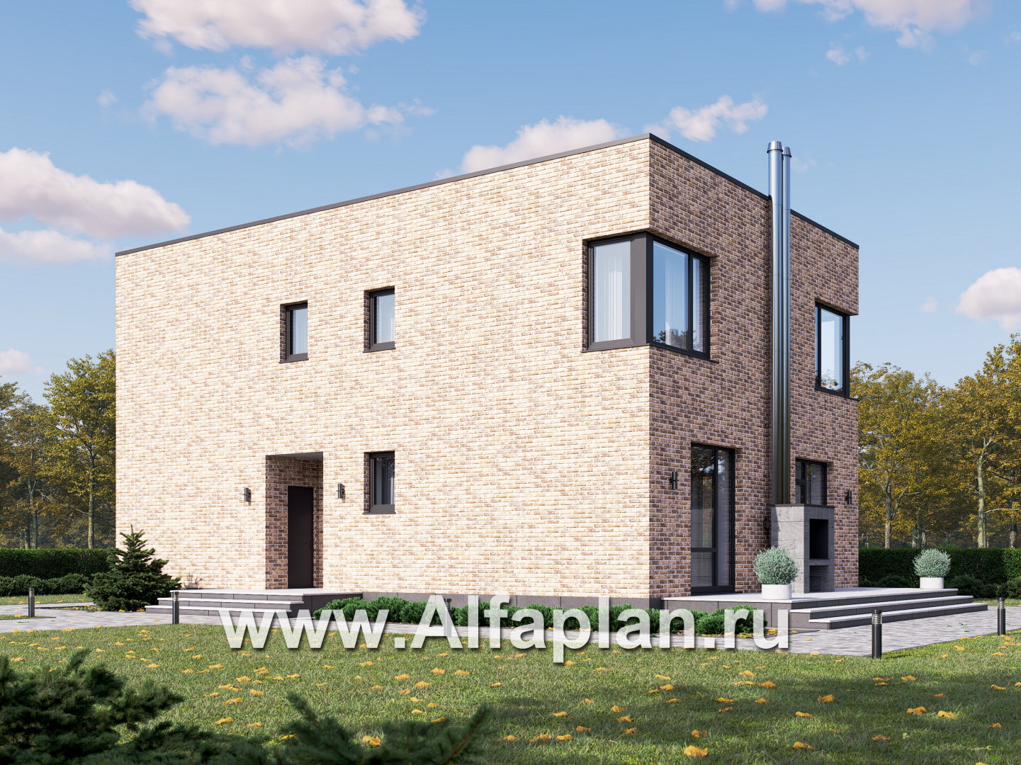 Проект двухэтажного дома, в стиле минимализм, с террасой и с плоской крышей, в стиле минимализм